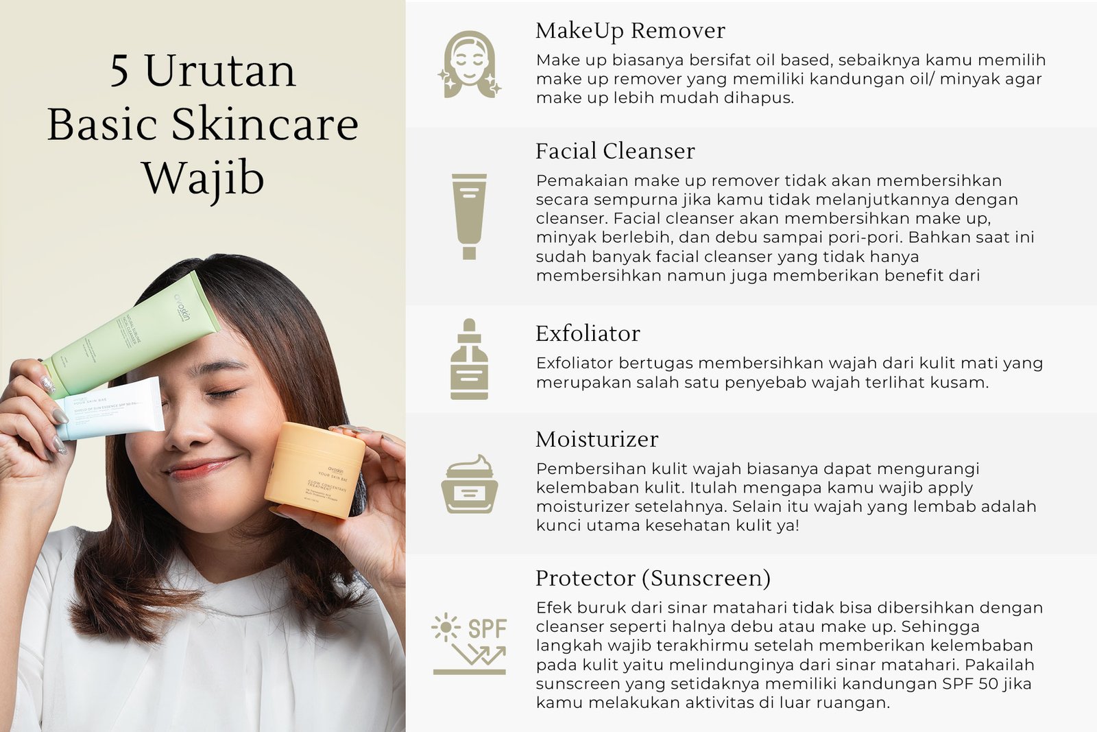 Urutan penggunaan produk skincare sangat penting untuk memastikan setiap produk dapat bekerja secara optimal. Berikut adalah urutan dasar skincare routine yang direkomendasikan: