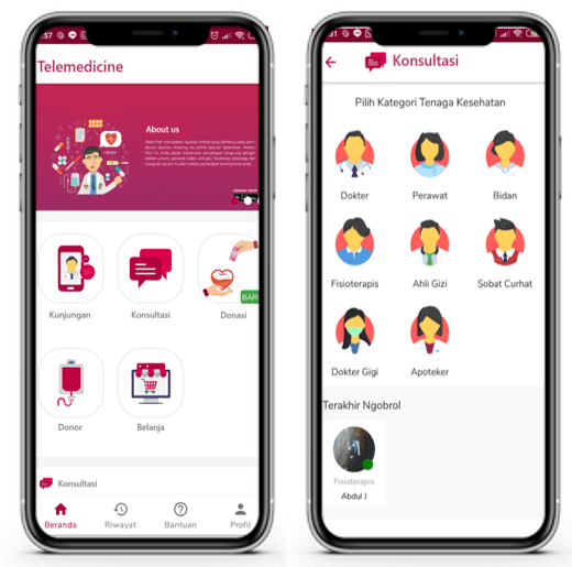 - Aplikasi seluler: Digunakan untuk pemantauan kesehatan, pengingat minum obat, atau konsultasi singkat.